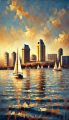 Vibrant Impasto Expression of San Diego's Skyline and Waters