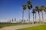 Serene View of San Diego Skyline from Lush Waterfront Park