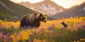 A Majestic California Grizzly Bear Amidst Blooming Sierra Nevadas
